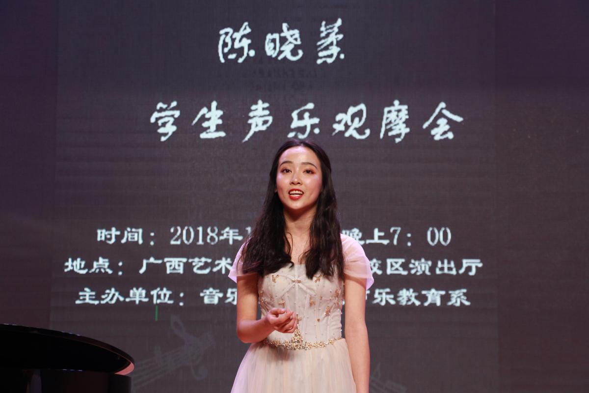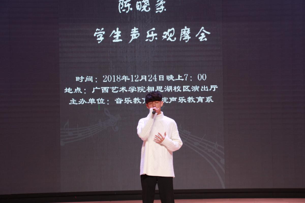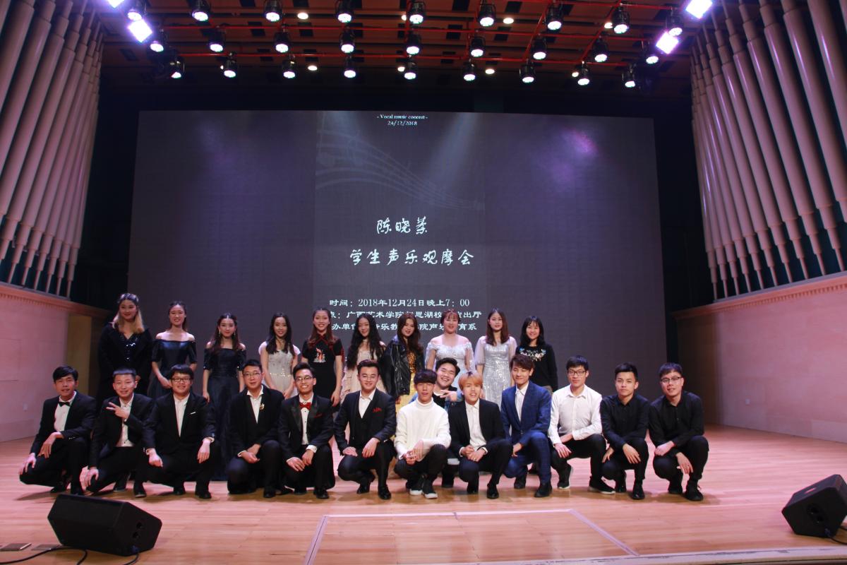 2018年12月24日晚,广西艺术学院音乐教育学院音乐厅歌声悠扬,掌声不断,音乐教育学院陈晓葇老师学生声乐观摩会在此举行。我院领导老师同学共同观看了本场音乐会。
