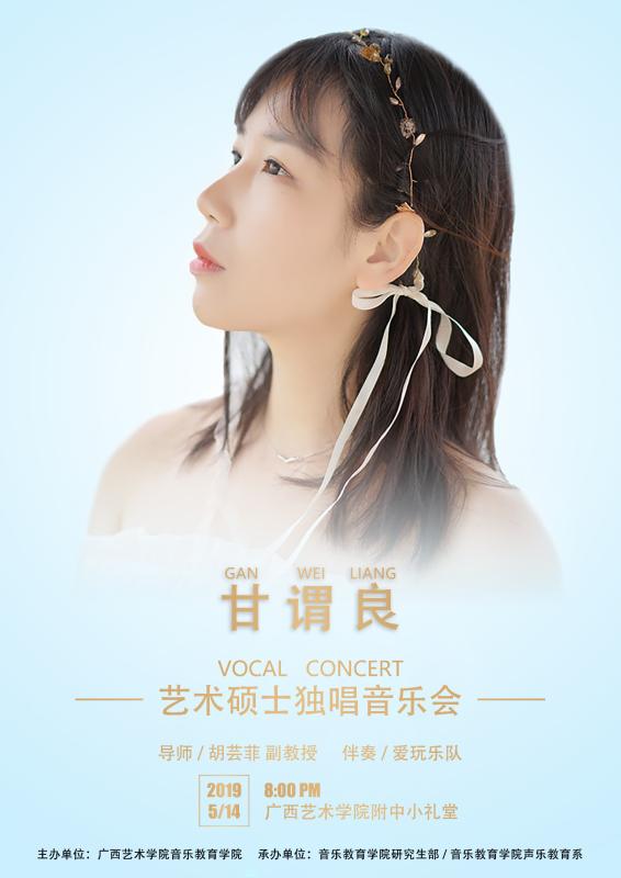【音乐会预告】音乐教育学院甘谓良艺术硕士独唱音乐会 来源: 作者:音乐教育学院 发布时间:2019-05-10 11:28:28 浏览次数: 次 【字体:小 大】 尊敬的_____先生/女士: 兹定于2019年5月14日(周二)20:00,在广西艺术学院附中小礼堂举办“甘谓良艺术硕士独唱音乐会”。 敬请莅临指导! 分享到: 【打印正文】
