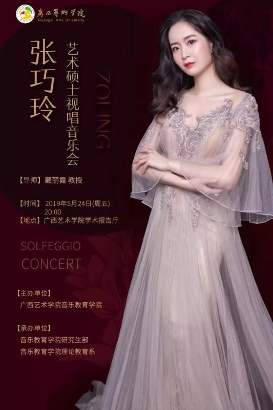 【音乐会预告】音乐教育学院张巧玲艺术硕士视唱音乐会 来源: 作者:音乐教育学院 发布时间:2019-05-25 23:35:02 浏览次数: 次 【字体:小 大】 张巧玲 艺术硕士视唱音乐会 【时 间】 2019年5月24日(周五)20:00 【地 点】 广西艺术学院学术报告厅 【导 师】 戴丽霞 教授 【主办单位】 广西艺术学院音乐教育学院 【承办单位】 音乐教育学院研究生部 音乐教育学院音乐理论教育系 敬请您光临指导! 分享到: 【打印正文】
