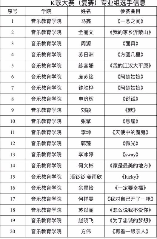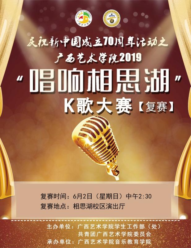 【大赛预告】广西艺术学院2019“唱响相思湖”K歌大赛(复赛)即将精彩开唱! 来源: 作者:音乐教育学院 发布时间:2019-06-02 13:25:25 浏览次数: 次 【字体:小 大】 恭喜以上同学进入复赛! 期待大家在复赛中更好的表现哦 我们的复赛时间是 6月2日(周日)14:30 在相思湖校区演出厅 一定记得来为你喜爱的歌手加油哦! 期待你的到来 分享到: 【打印正文】