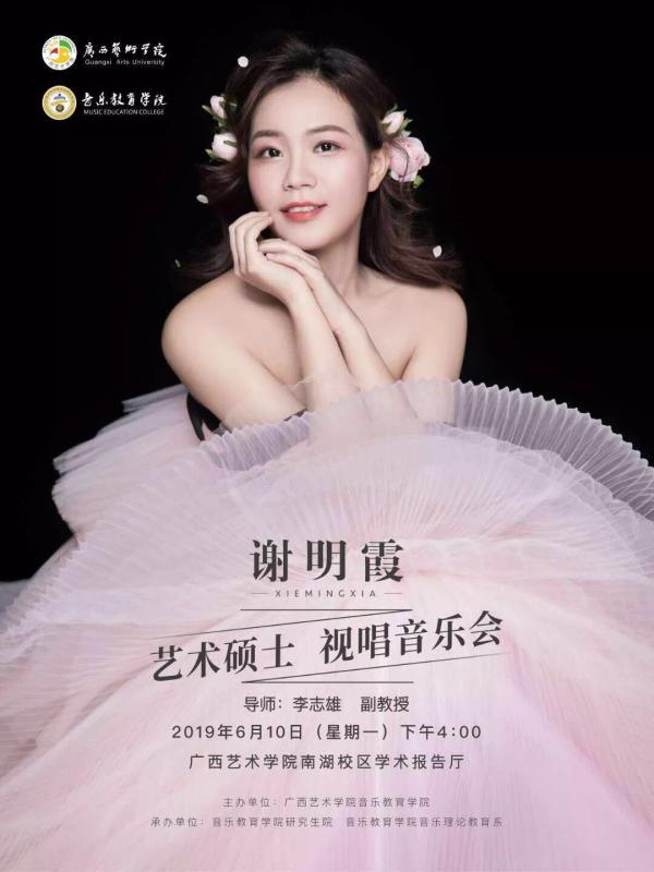 【音乐会预告】音乐教育学院谢明霞艺术硕士视唱音乐会 来源: 作者:音乐教育学院 发布时间:2019-06-09 14:13:51 浏览次数: 次 【字体:小 大】 邀请函 兹定于2019年06月10日(周一)下午4:00于广西艺术学院南湖校区学术报告厅举办“音乐教育学院谢明霞艺术硕士视唱音乐会”。 敬请莅临指导! 审核:姚冰 编辑:方焕 文案:音乐教育学院“蒲公英”记者团 分享到: 【打印正文】