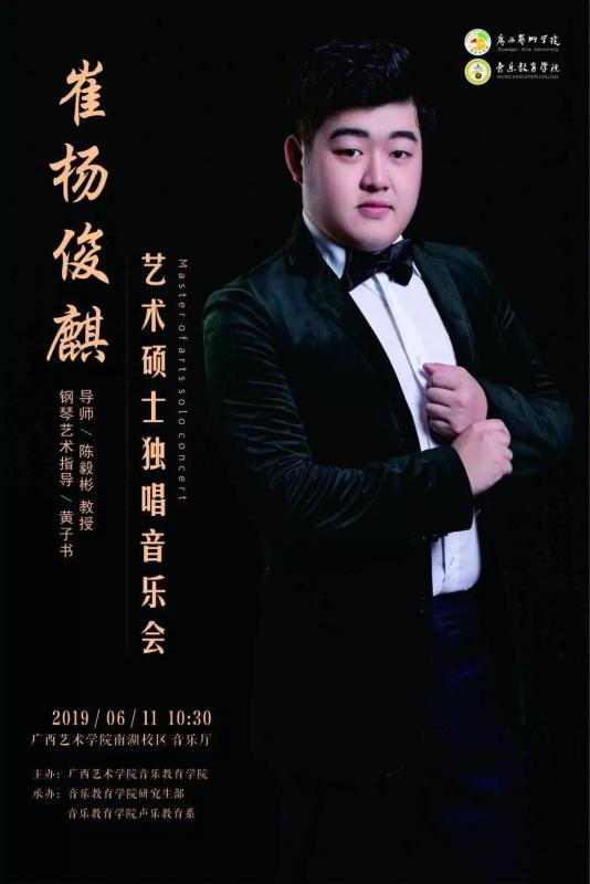 【音乐会预告】音乐教育学院崔杨俊麒艺术硕士独唱音乐会 来源: 作者:音乐教育学院 发布时间:2019-06-10 11:18:59 浏览次数: 次 【字体:小 大】 兹定于2019年06月11日(周二)10:30于广西艺术学院南湖校区音乐厅举办“音乐教育学院崔杨俊麒艺术硕士独唱音乐会”。 敬请莅临指导! 分享到: 【打印正文】