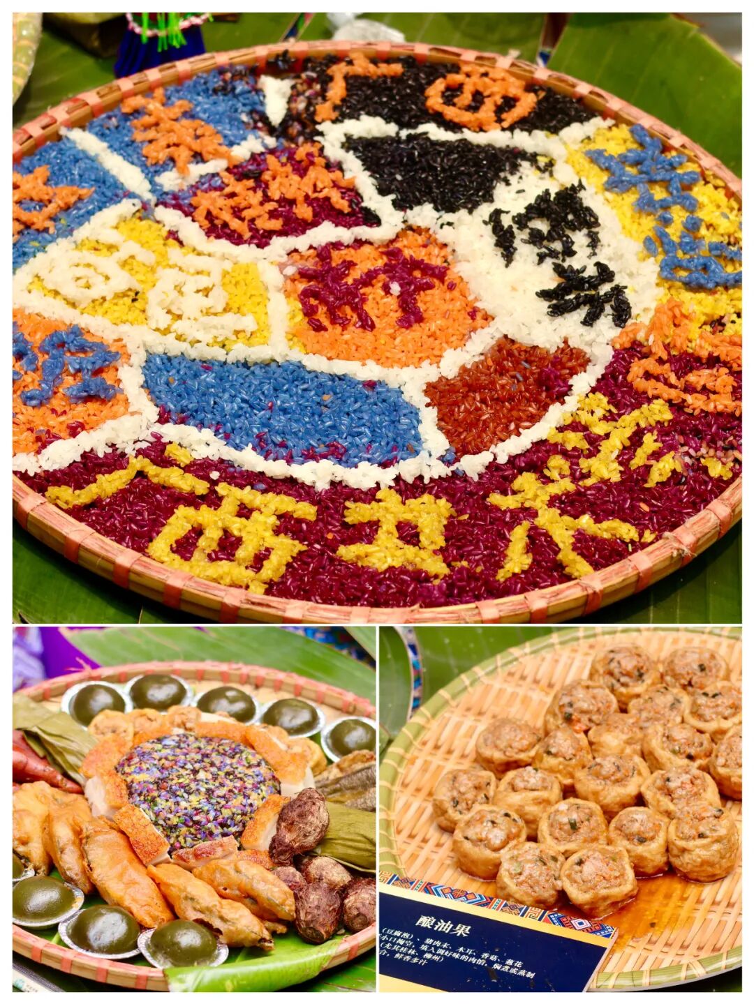 长桌铺开,五色糯米饭、艾叶粑